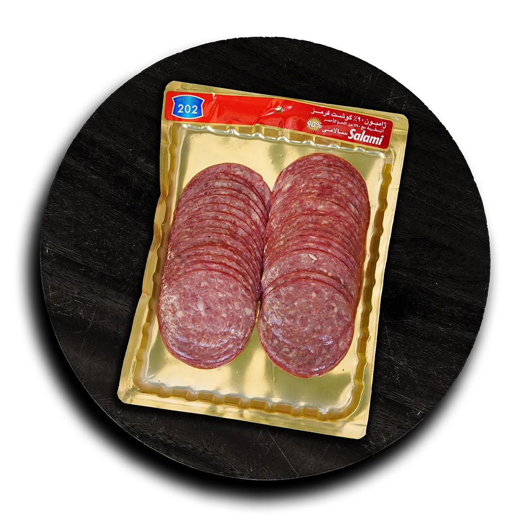 قیمت ژامبون 90% گوشت قرمز(سالامی) هر 250گرم (15± گرم)