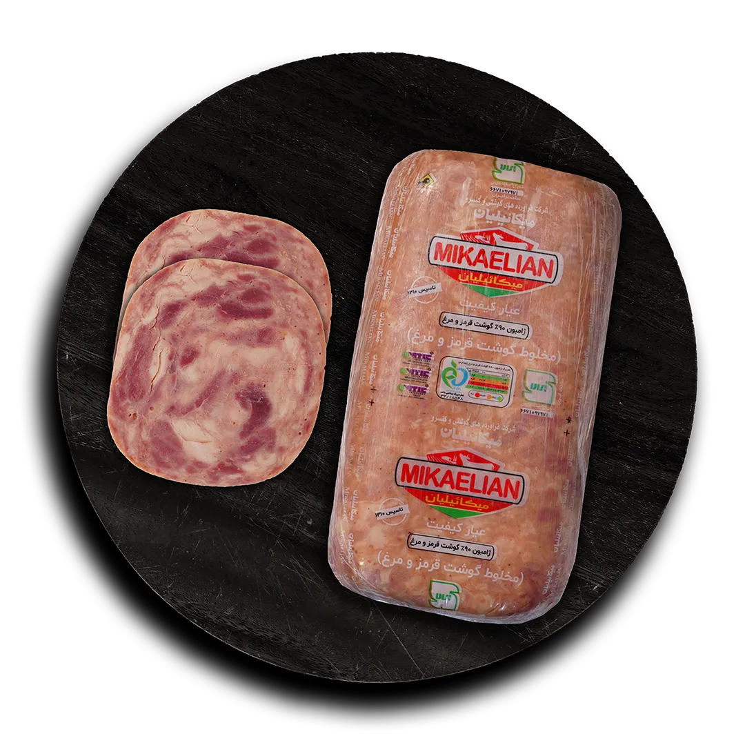 قیمت ژامبون90% گوشت ومرغ مکائیلیان هر 200گرم (30± گرم)